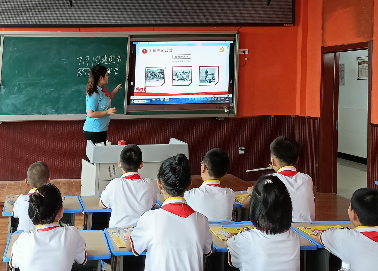 捐赠仪式后,社会实践团队成员们与留守儿童进行交流互动,他们以“学党史 感党恩 跟党走”为主题,给孩子们上了一堂别开生面的党史学习教育课,通过生动讲解,再现了新中国成立的伟大历史瞬间,给孩子们传递了信念、信心、信仰以及激励积极向上的奋进力量,让红色基因薪火相传。